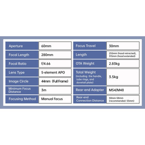 > ToupTek Apochromatischer Refraktor HOPE D60 60/280 Tilter