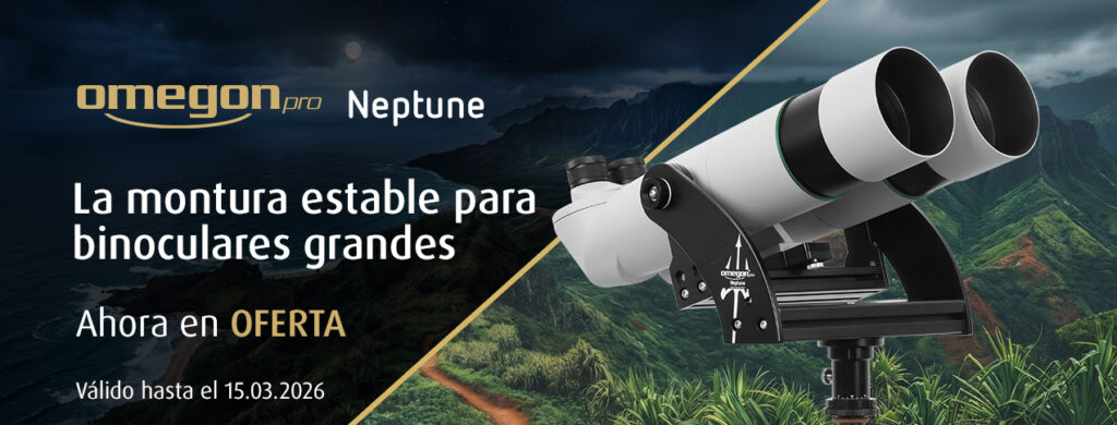 Con dos ojos a través del universo: Descubra ahora nuestra montura de horquilla premium Omegon Neptune y ahorre 200 € en cualquier versión. Ya sea sola o en conjunto con prismáticos de gran tamaño. La Neptune representa un movimiento ultrasuave y una gran estabilidad en cada observación.