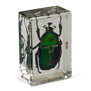 Deze groene rozenkever komt uit Azië, maar vertoont overeenkomsten met zijn Europese verwant. Deze kever is met zijn ledematen ongeveer 3,5 cm lang en 2,5 cm breed. Zijn Europese verwanten worden als ernstig bedreigd beschouwd en staan daarom bij ons op de rode lijst.