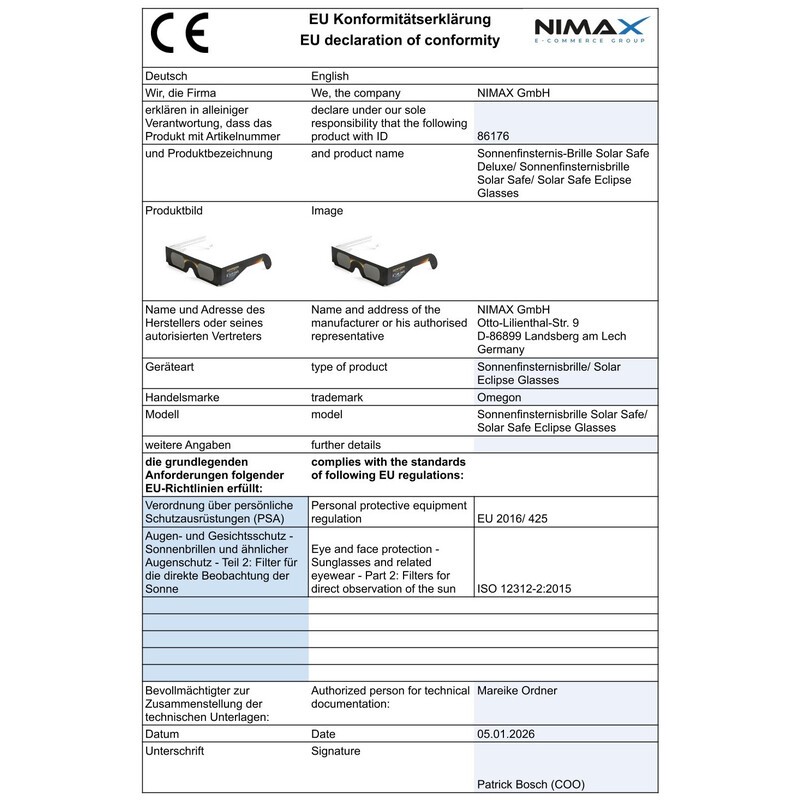 Akcesoria do teleskopów > Filtry > Filtry słoneczne > Okulary do zaćmienia Słońca > Omegon Okulary do obserwacji zaćmienia Słońca Solar Safe