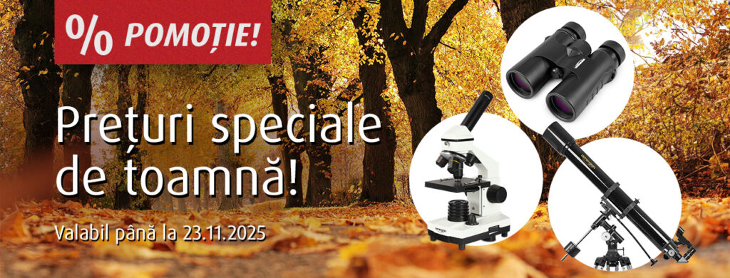 Telescoape, un binoclu sau ochelari pentru observarea cerului și alte accesorii potrivite pentru observație sunt desigur disponibile la noi – răsfoiește produsele noastre chiar acum. Datorită livrării rapide, produsele aflate în stoc vor ajunge la tine în doar câteva zile.